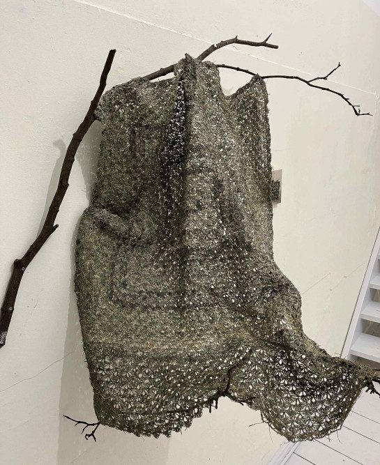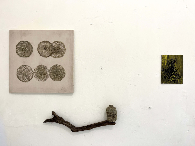 Fu-Ho Tsai ist eine taiwanesische Künstlerin, die mit Pflanzenfasern häkelt und Kunst auch als ein Mittel sieht, sich sozial zu engagieren. Das Häkeln von Pflanzenfasern stellt für sie nicht nur eine Form des Kunstschaffens dar, sondern auch einen Prozess der Selbstheilung und einen Weg, innere Wunden zu konfrontieren und künstlerische Reparaturen durchzuführen...Fu-Ho Tsai wendet sich in der Stille, die die Pandemie eine zeitlang generierte, natürlichen Materialien zu und beginnt, mit Pflanzenfasern zu häkeln. Stets in Resonanz mit der Natur, lässt sie den verwendeten Gräsern ihren Freiraum, zwingt ihnen keine feste Form auf, sondern unternimmt einen „taktilen Dialog“ zwischen ihren Händen und der natürlichen Welt. Fu-Ho Tsai wie auch Nicole Bianchet lösen in der Ausstellung Where the Horizon Softens Grenzen auf und hinterfragen die Dichotomie zwischen Mensch und Natur beziehungsweise Kunst und Natur.